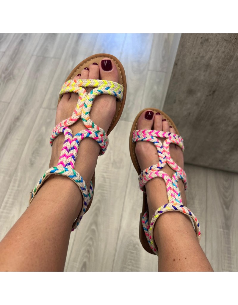 Sandali con fasce in corda e fondo morbido.