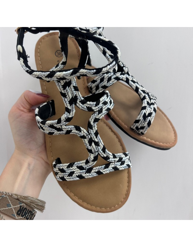 Sandali con fasce in corda e fondo morbido.