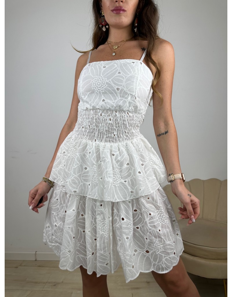 Dress in pizzo sangallo con balze e bretelline.