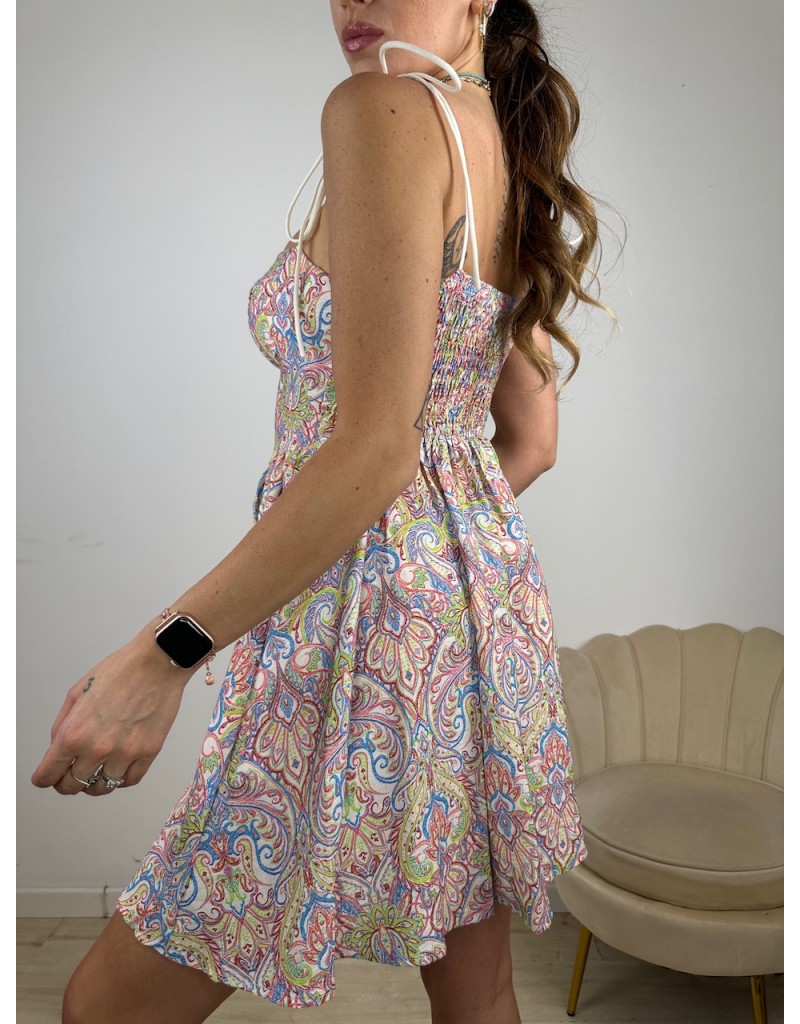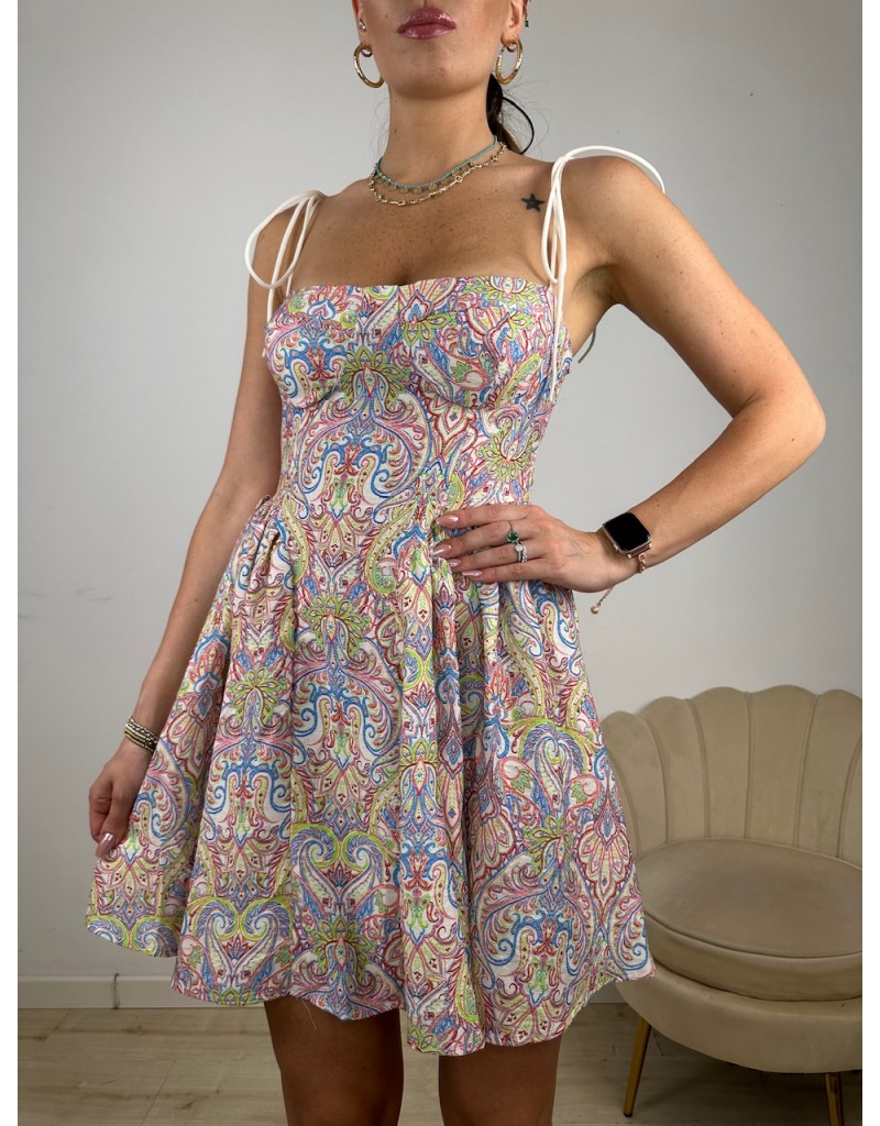 Vestito a fantasia con bustier e laccetti in cotone.