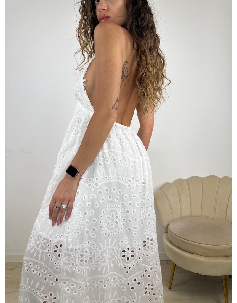 Vestito Lungo pizzo sangallo, con scollatura posteriore.