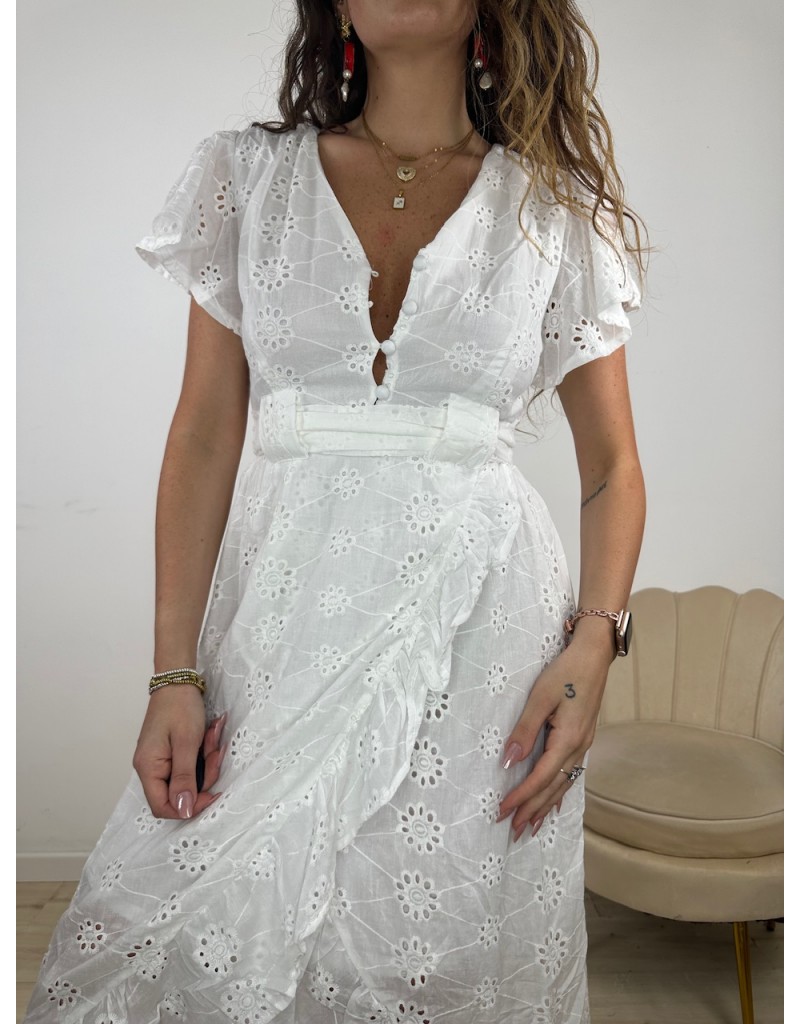 Vestito con parte inferiore a portafoglio in pizzo sangallo. Tessuto TopQuality