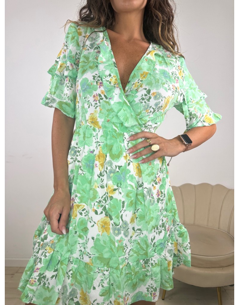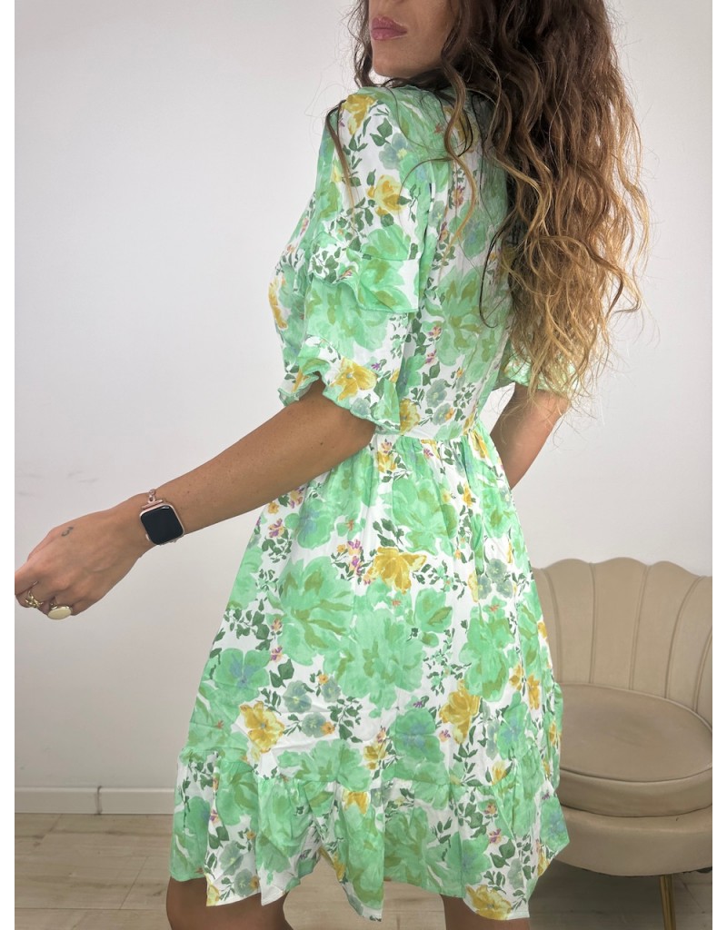 Dress a fantasia floreale ad incrocio. Tessuto topquality.