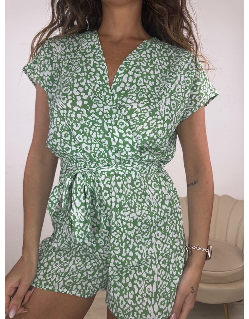 Tutina in microfantasia con chiusura ad incrocio.