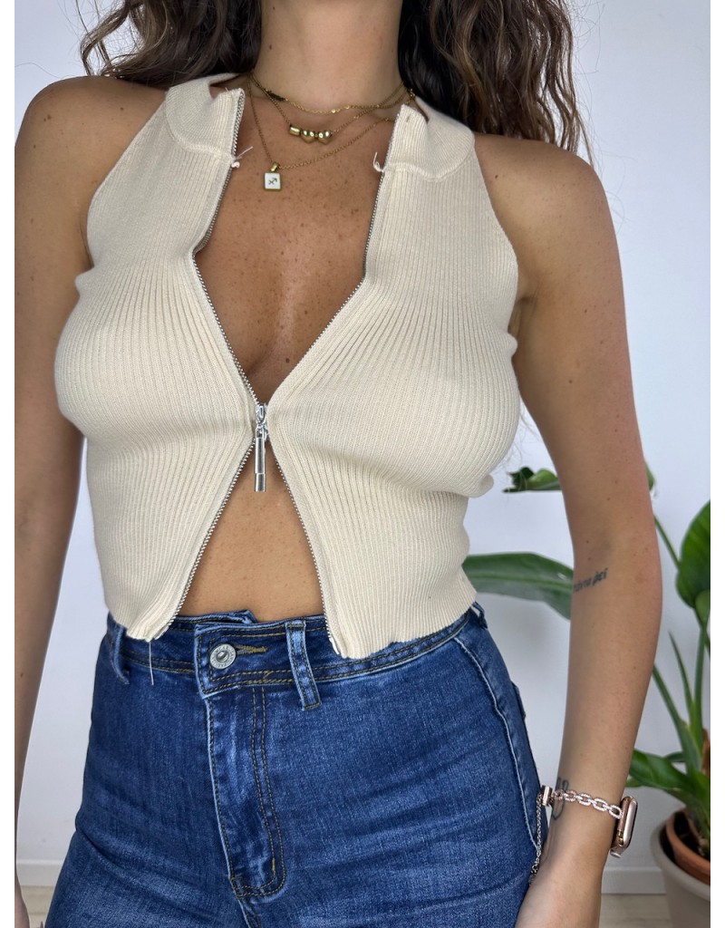Crop Top con Zip e mezzo collo.