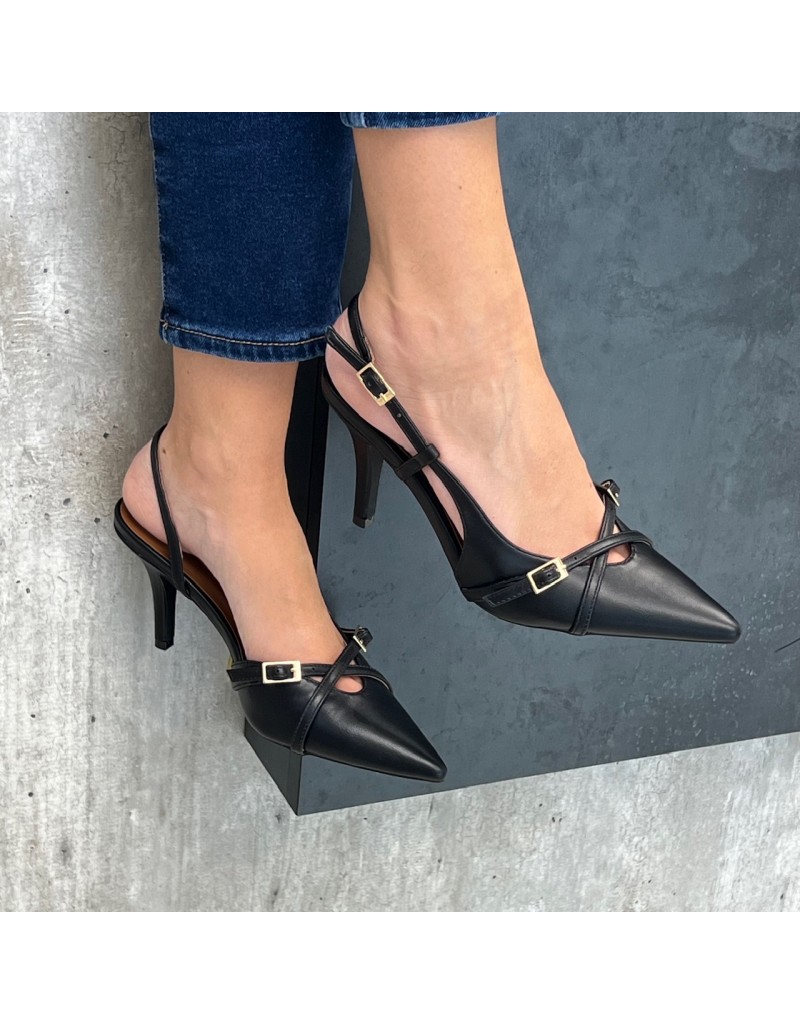 Dècolleté con doppio cinturino a incrocio.