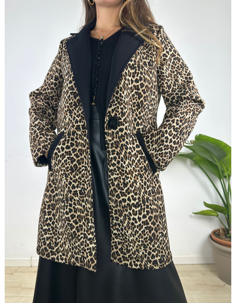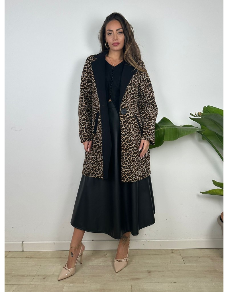 Giacca lunga a fantasia maculata,modello over.