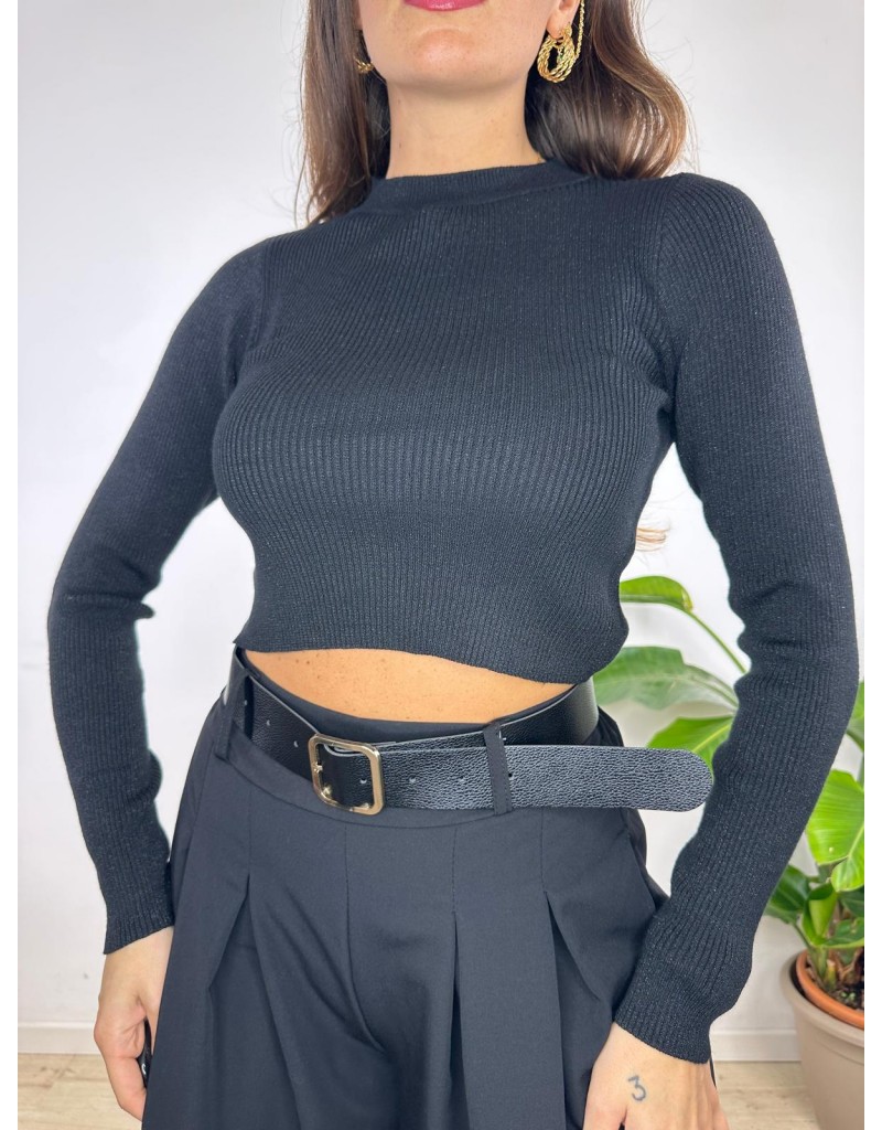 Maglia crop laminata a manica lunga.