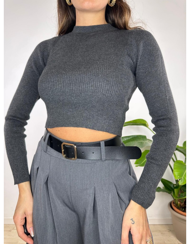 Maglia crop laminata a manica lunga.
