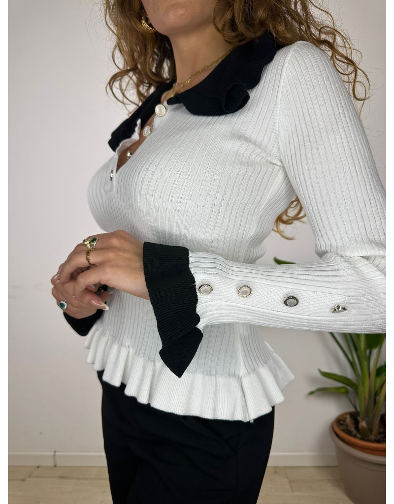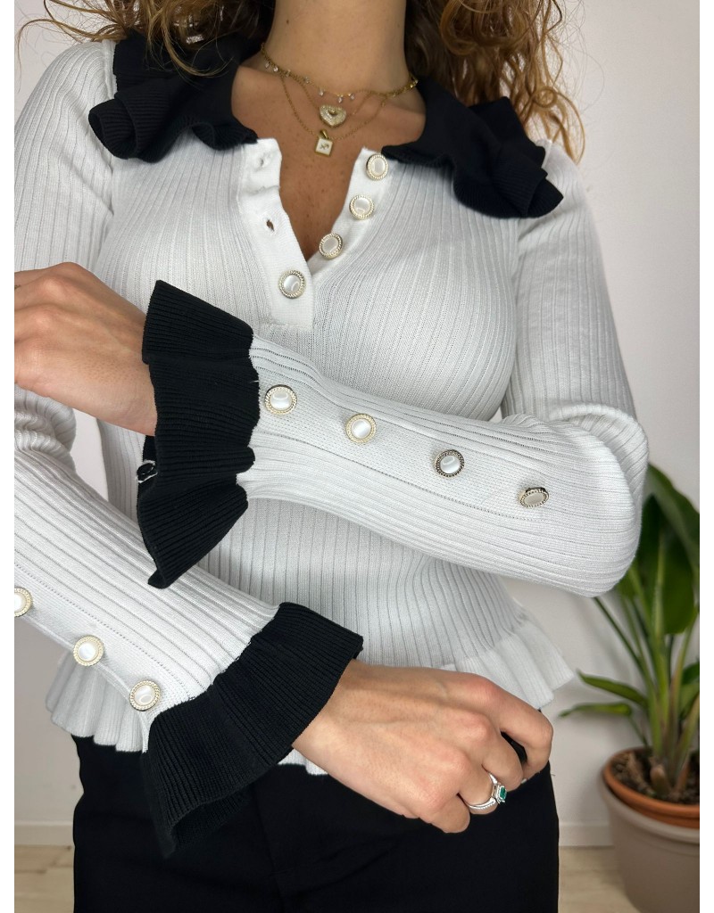 Maglia con maxi collo e bottoncini. tessuto costine.