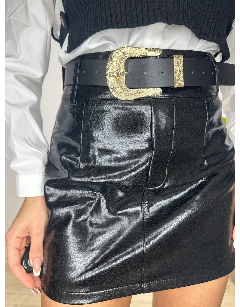 Minigonna in ecopelle con cintura.