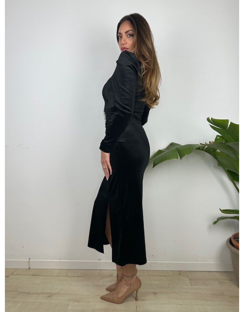 Vestito lungo in ciniglia con accessorio.