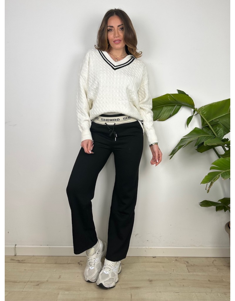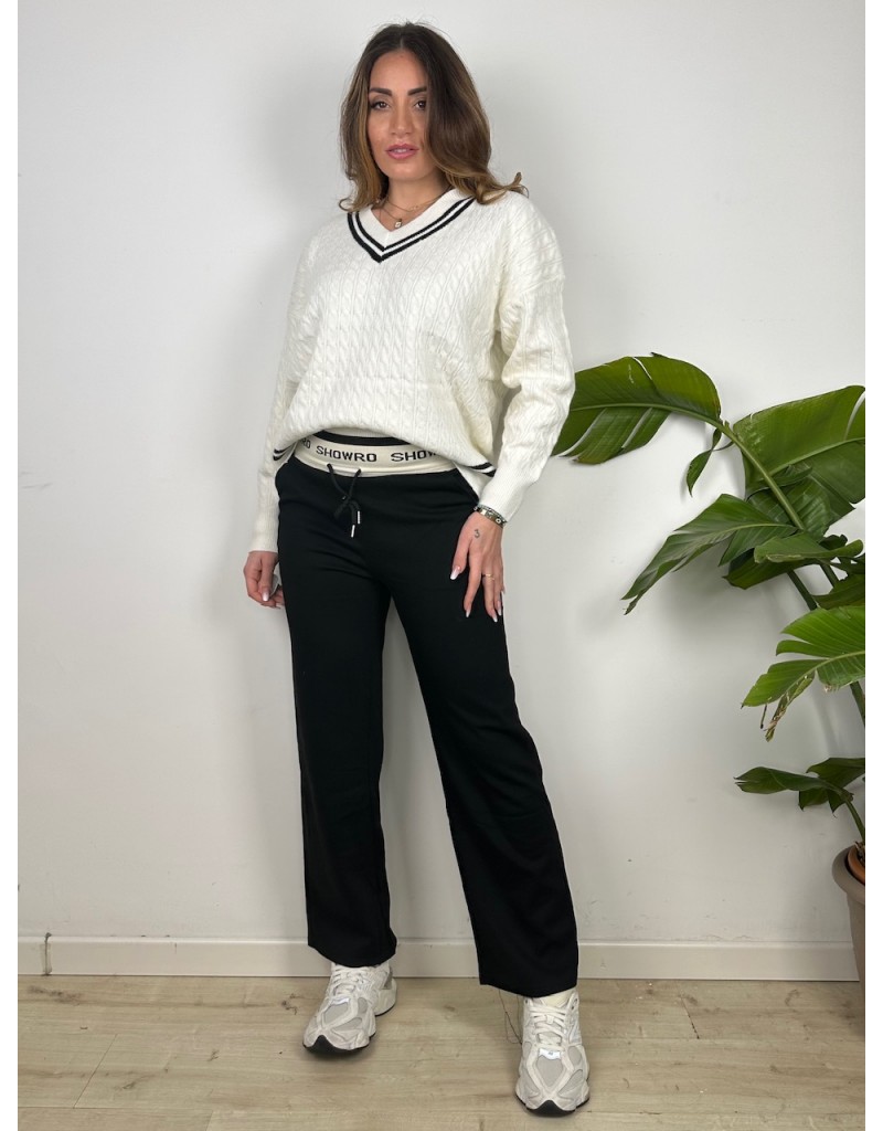 Pantaloni in tuta con molla esterna. Gamba larga.