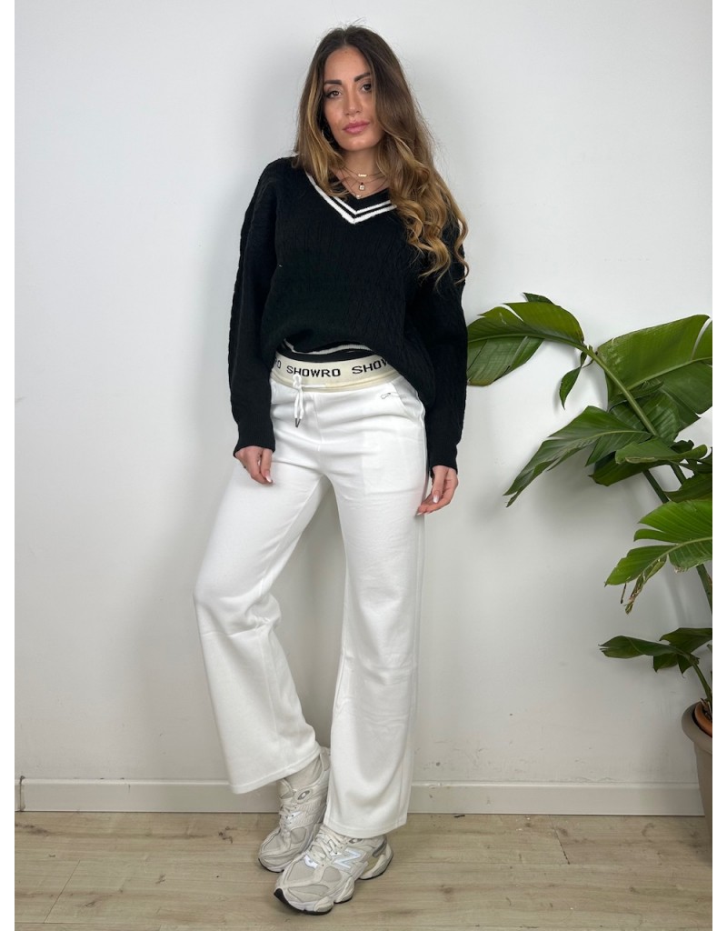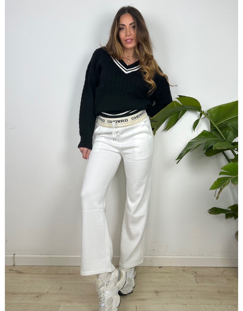Pantaloni in tuta con molla esterna. Gamba larga.