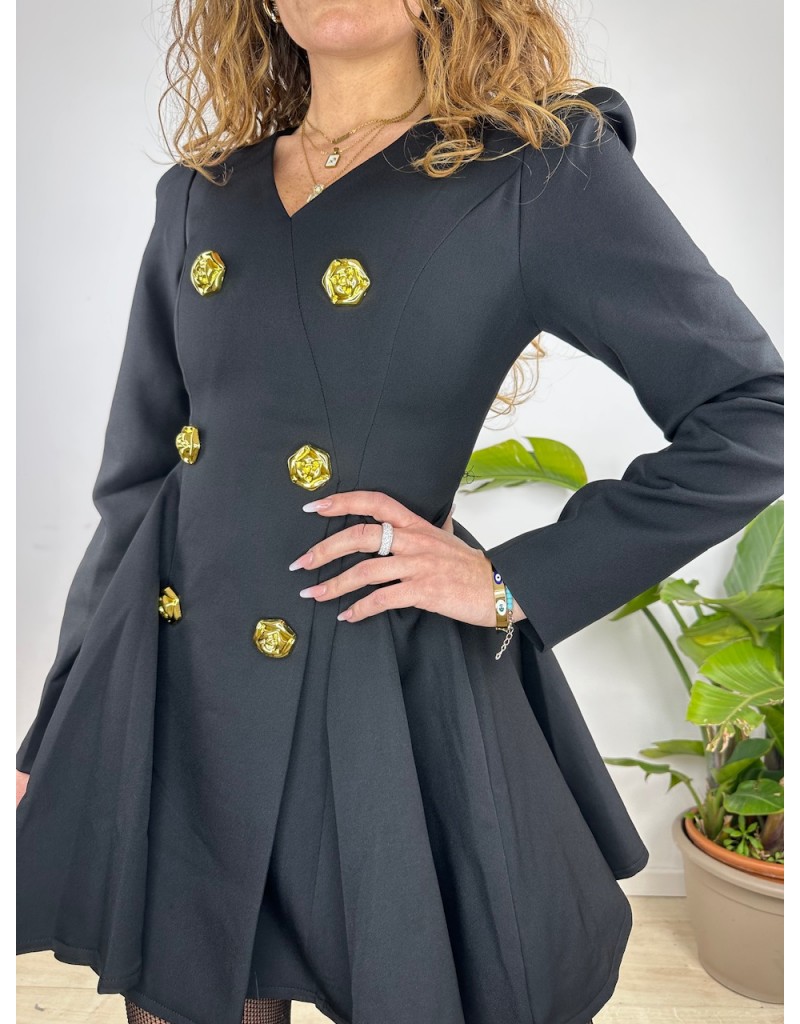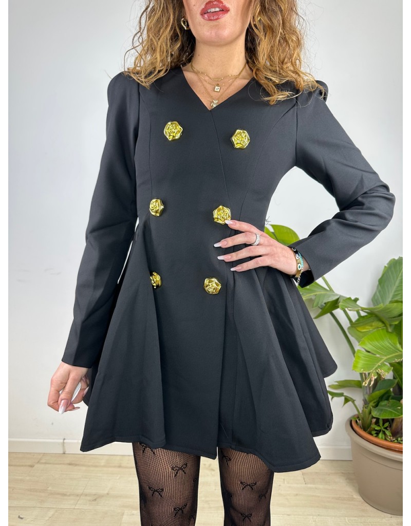 Dress con bottoni oro, modello campana, tessuto TopQuality.