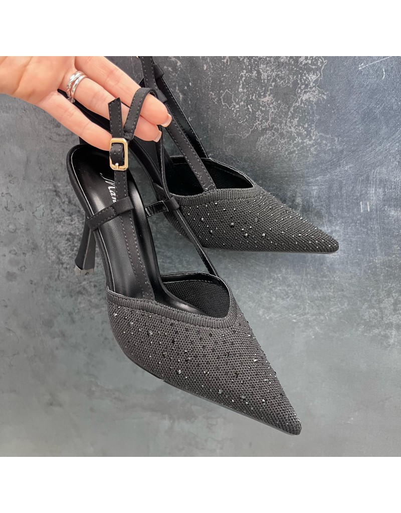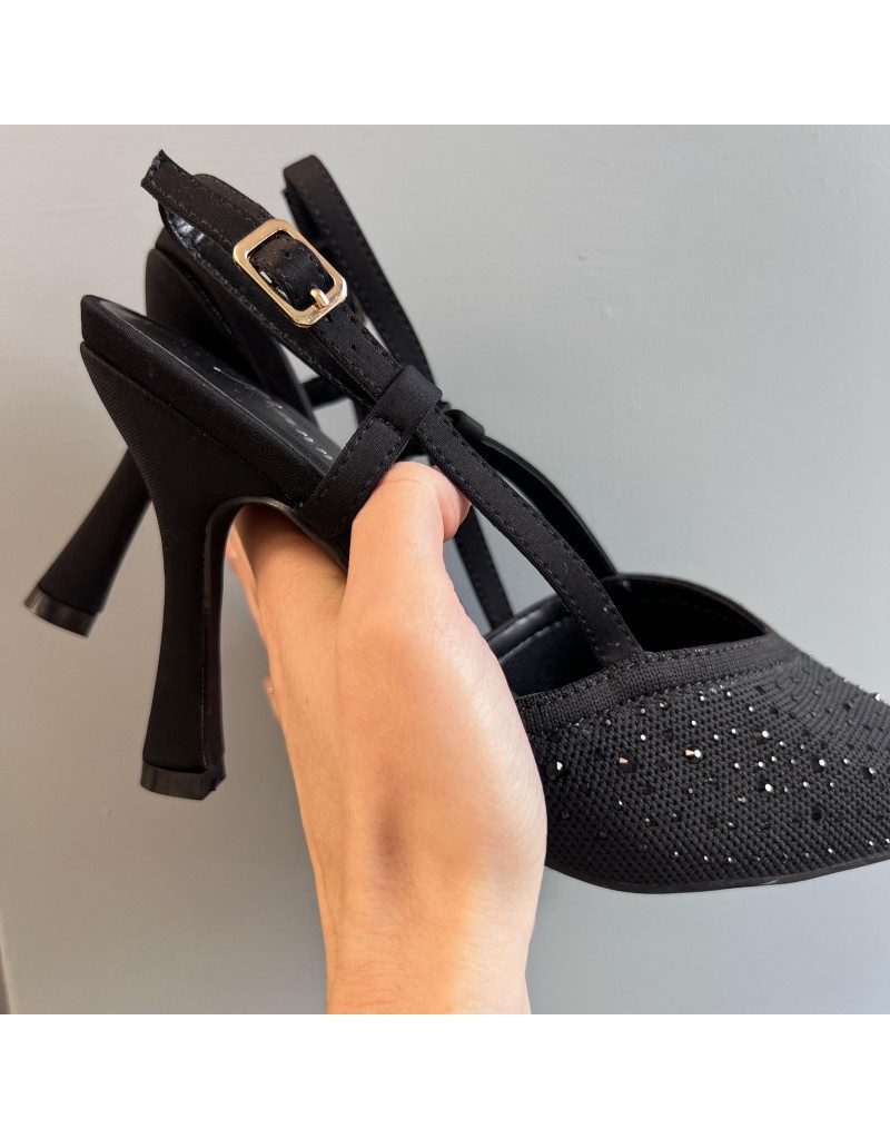 Scarpe con tacco alto slingback in tessuto con dettagli di strass. Fascetta posteriore con elastico. Modello a punta.