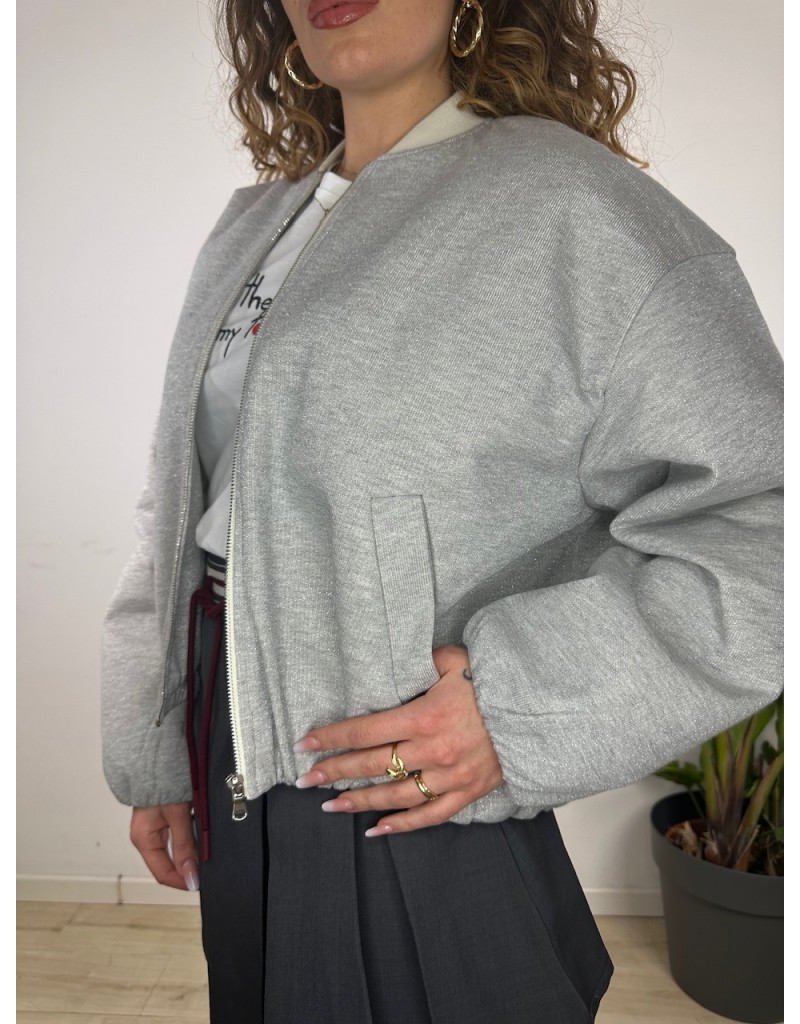 Giubbino modello bomber crop laminato.