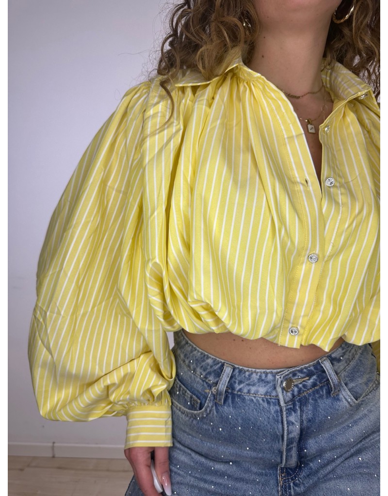 Camicia rigata modello crop e manica ampia.