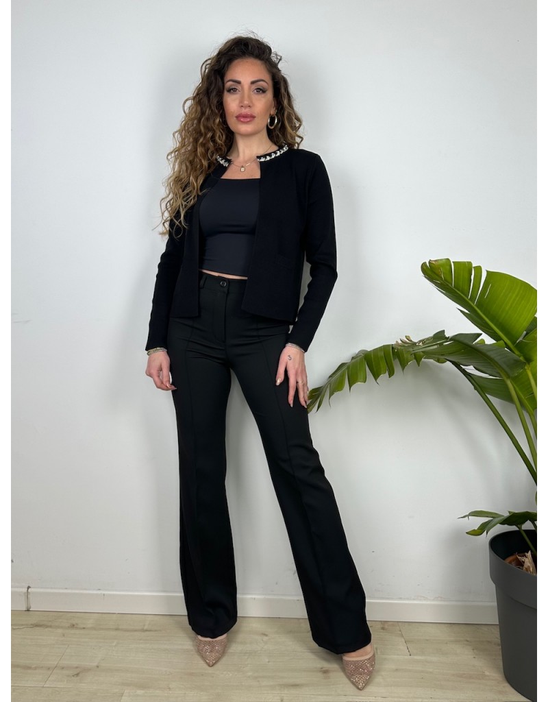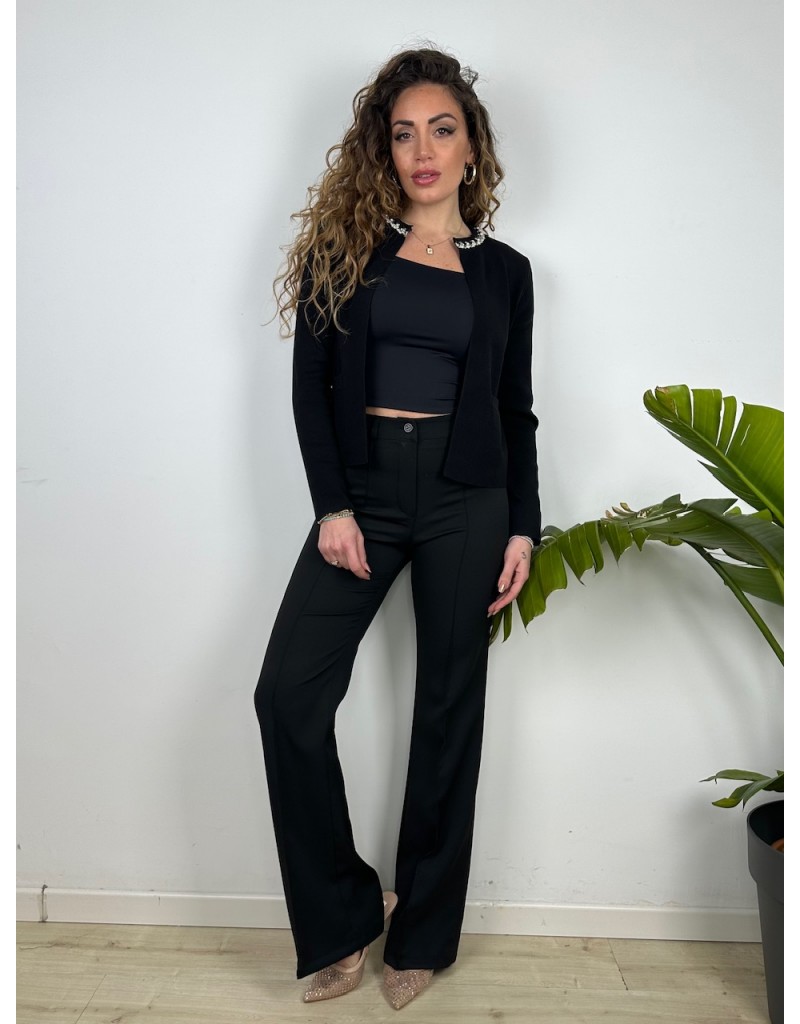 Pantaloni in tessuto morbido con chiusura a bottone.