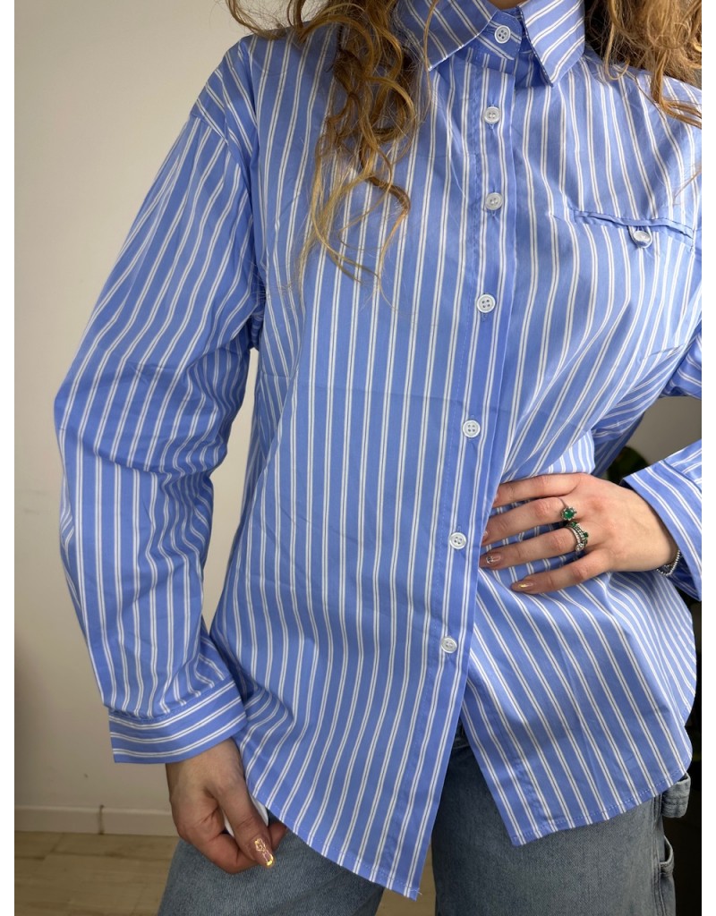 Camicia a fantasia righe, con finto taschino al petto.