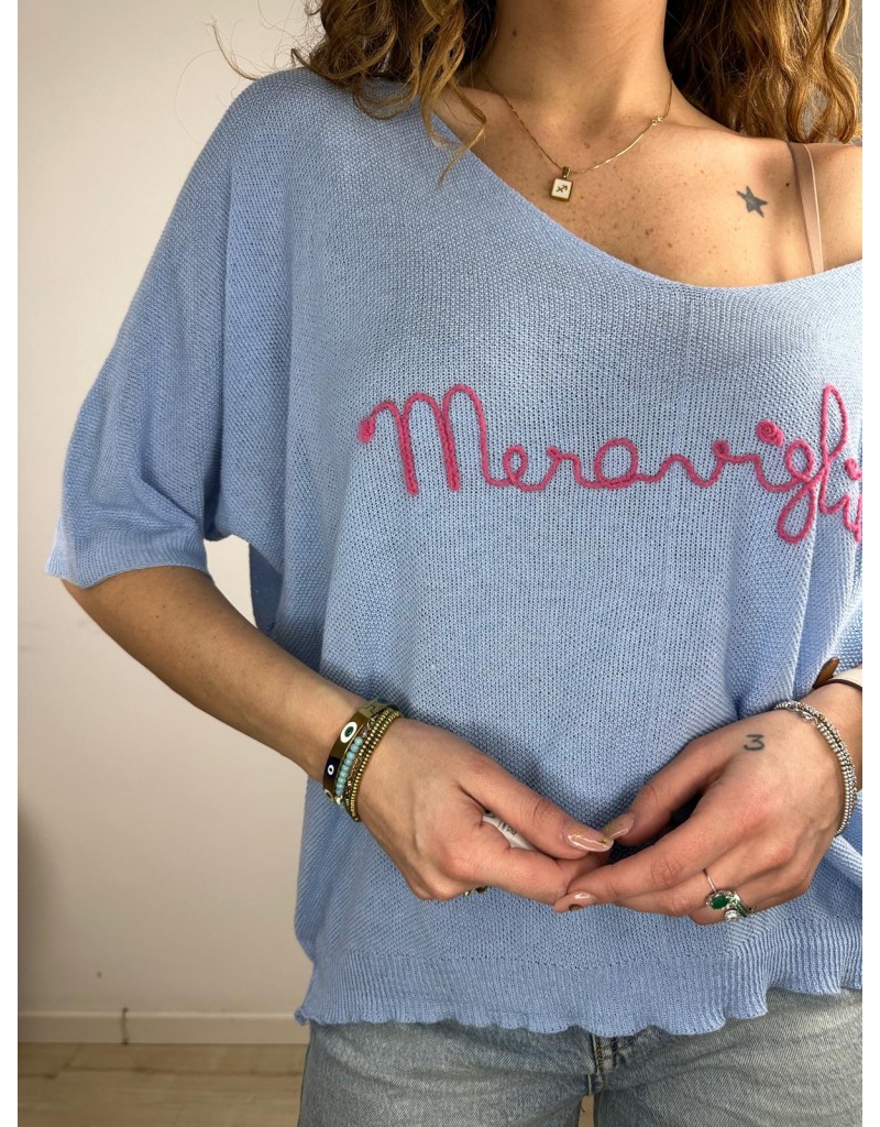 Maglia di filo con scollo a V e manica a 3/4.