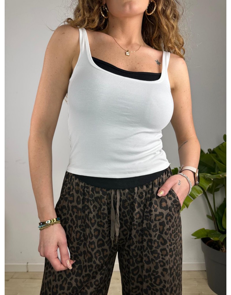 Top costine a girocollo con finta maglia sotto.Coppette interne