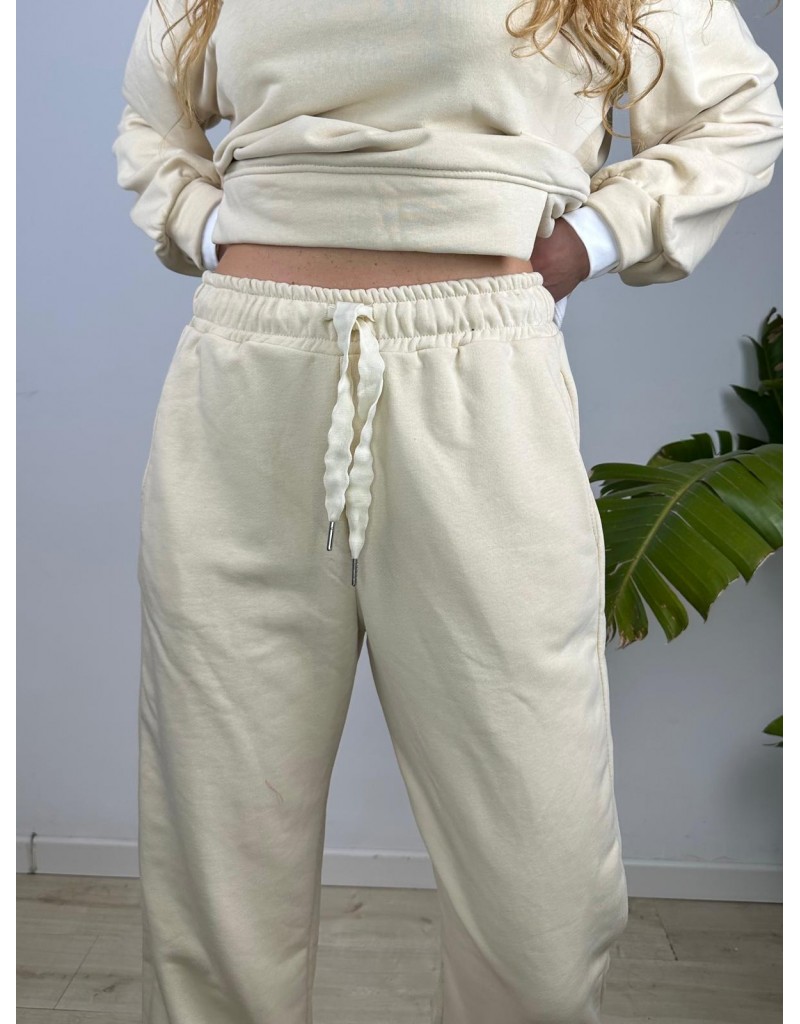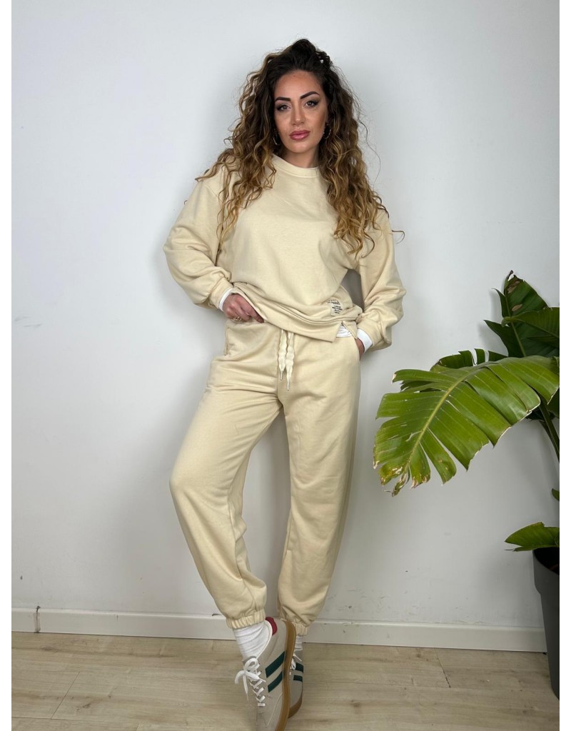 Pantalone tuta con elastico in vita e elastico alla caviglia.