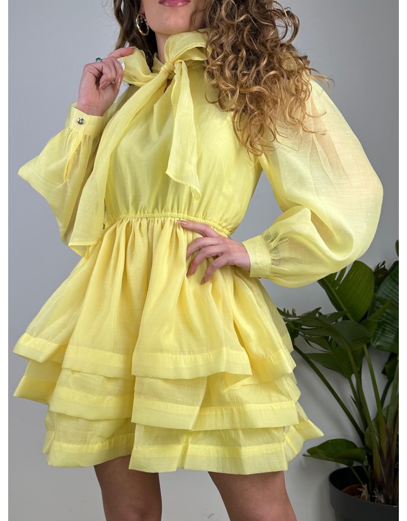 Dress corto elegante a balze con manica lunga velata.
