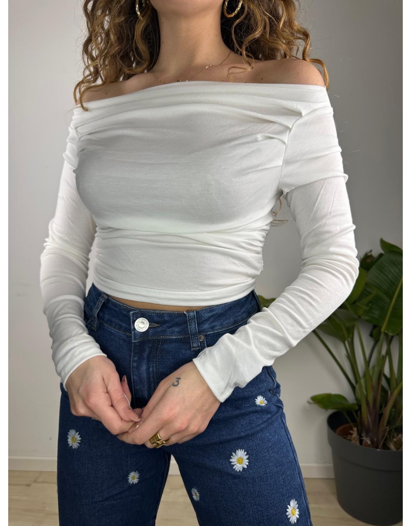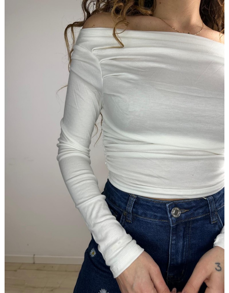 Maglia a manica lunga con scollo a barca.Taglia unica