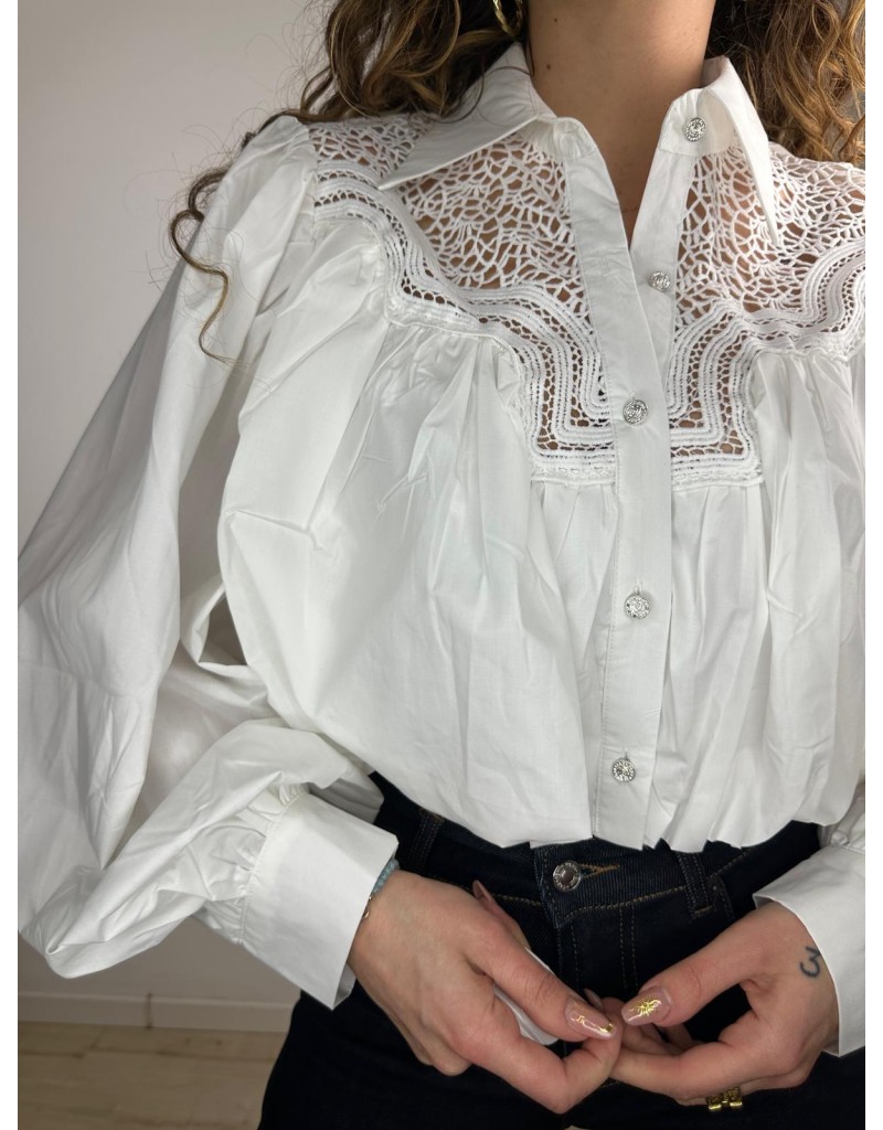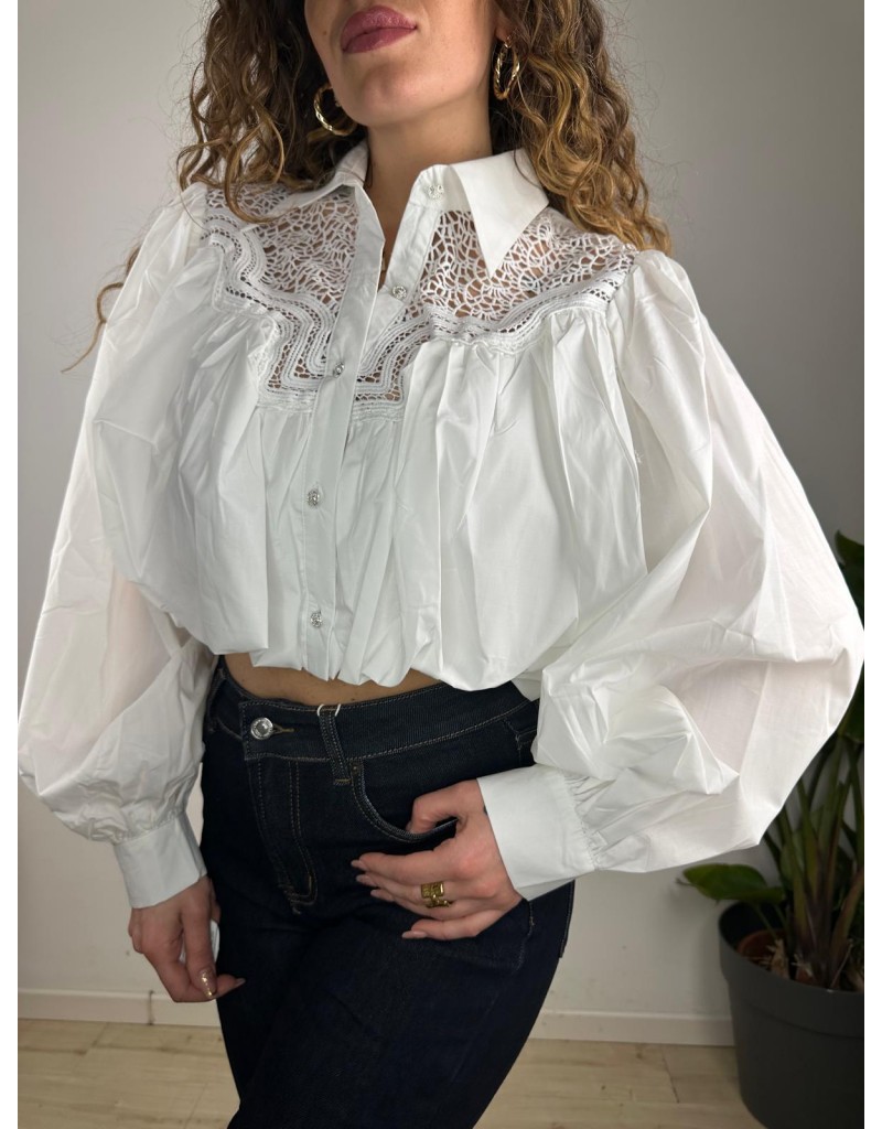Camicia crop con elastico in vita,manica larga.Chiusura e pizzo sulla parte frontale.