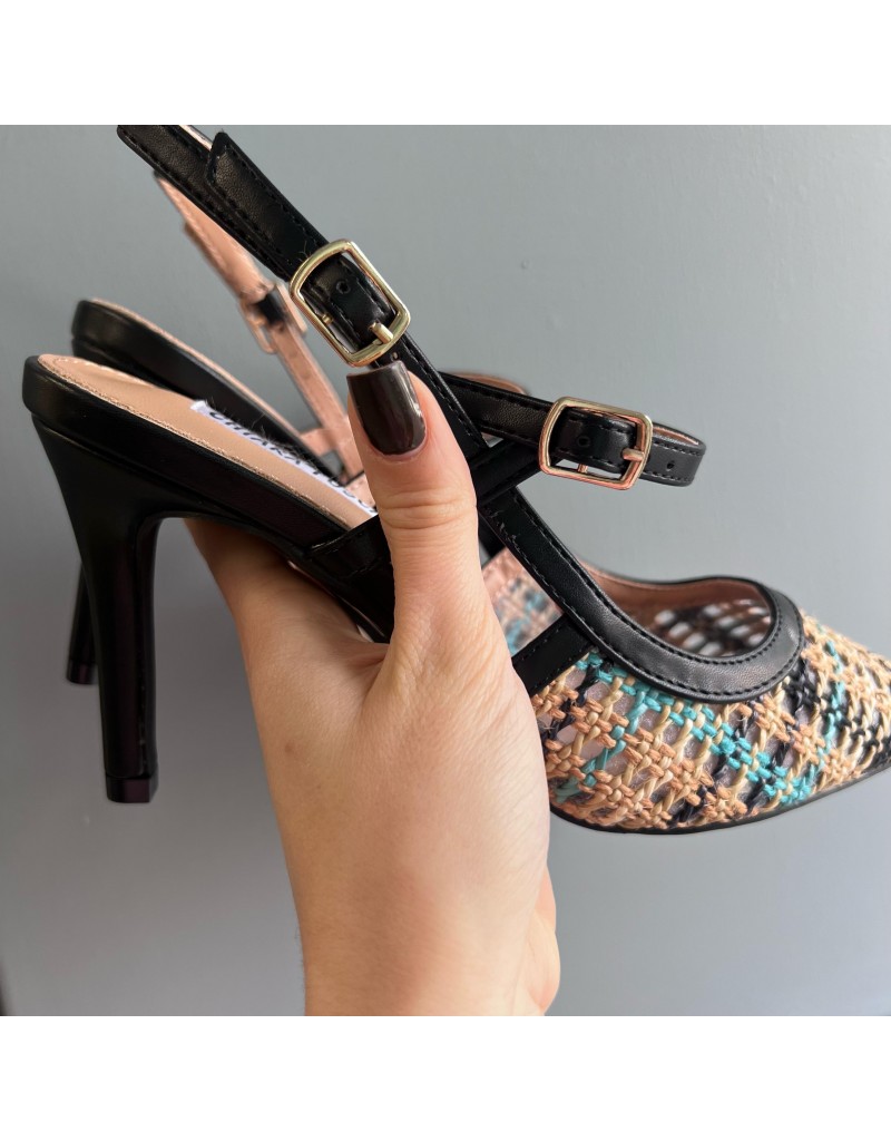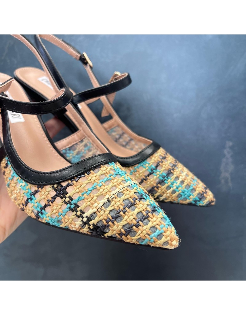Slingback a punta con tacco sottile alto,chiusura con doppio cinturino in ecopelle