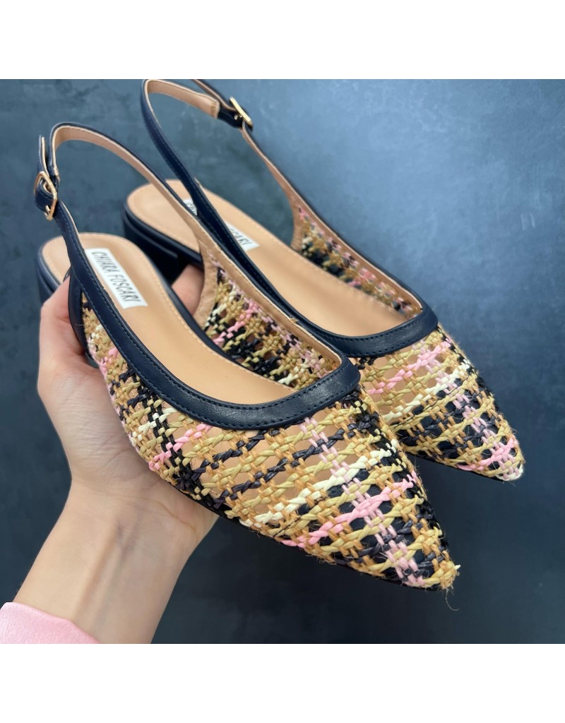Slingback basso a punta ,chiusura con cinturino in ecopelle