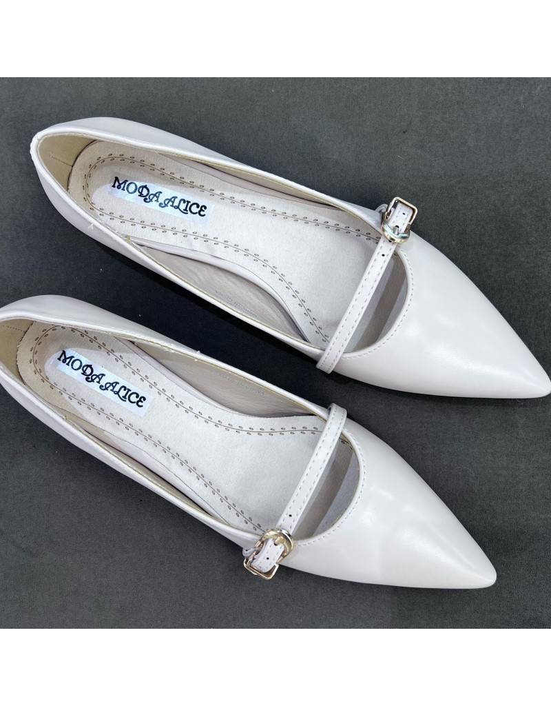 Bambolina bassa in ecopelle a punta,cinturino sul collo piede.
