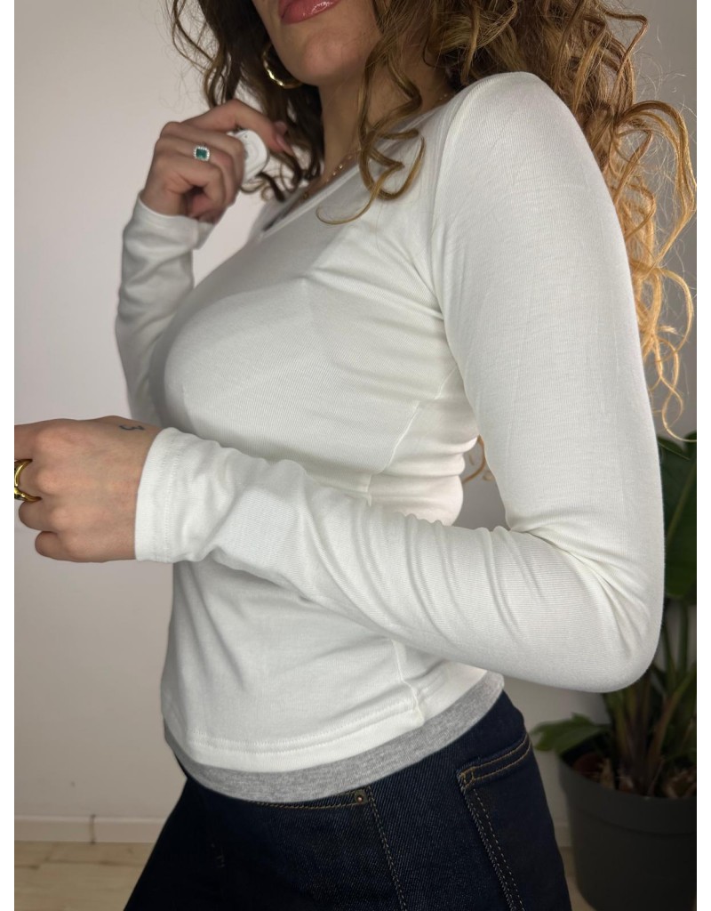 Maglia a costine a manica lunga,con scollo a V.Taglia unica