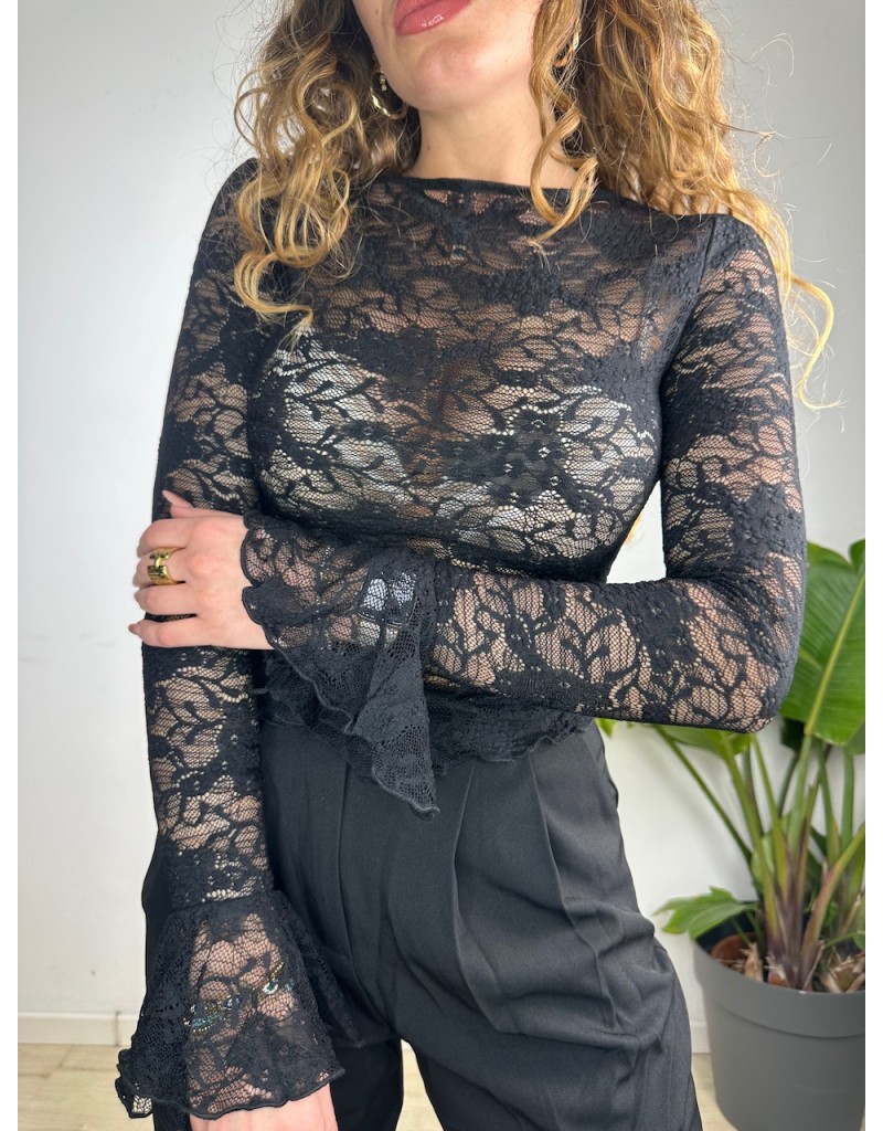 Maglia in total pizzo con polsini ampi.