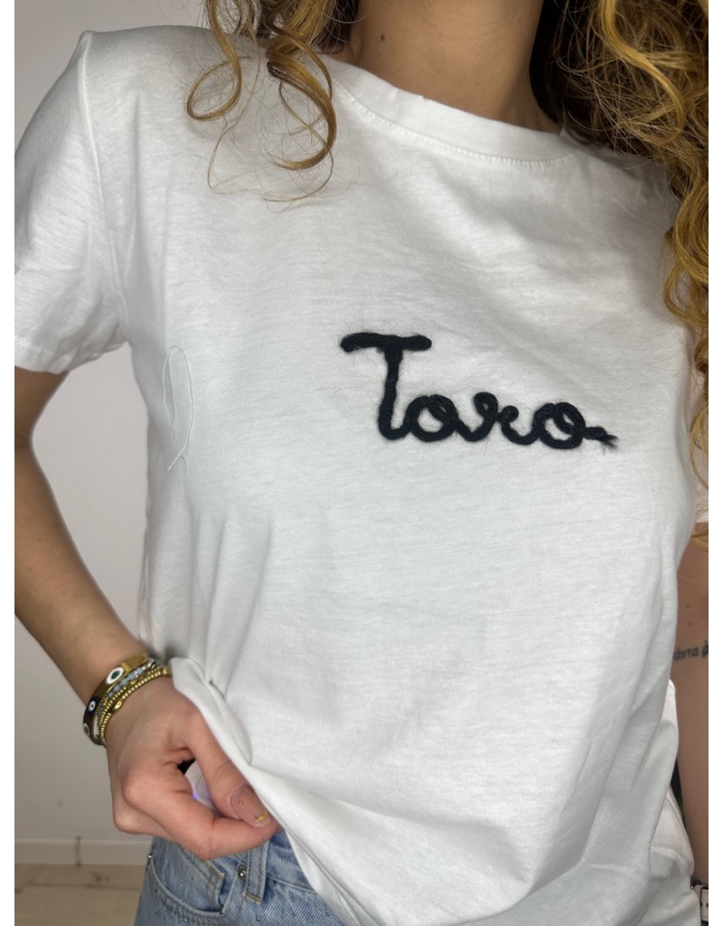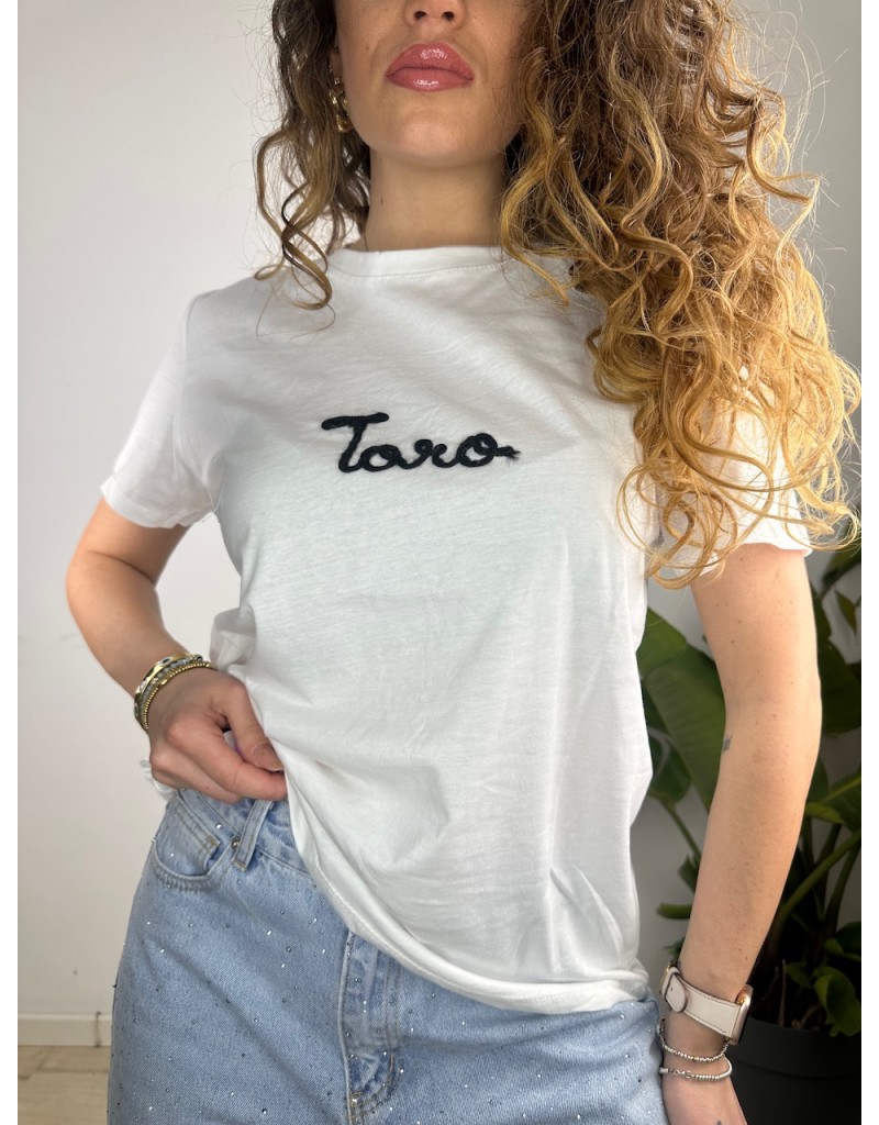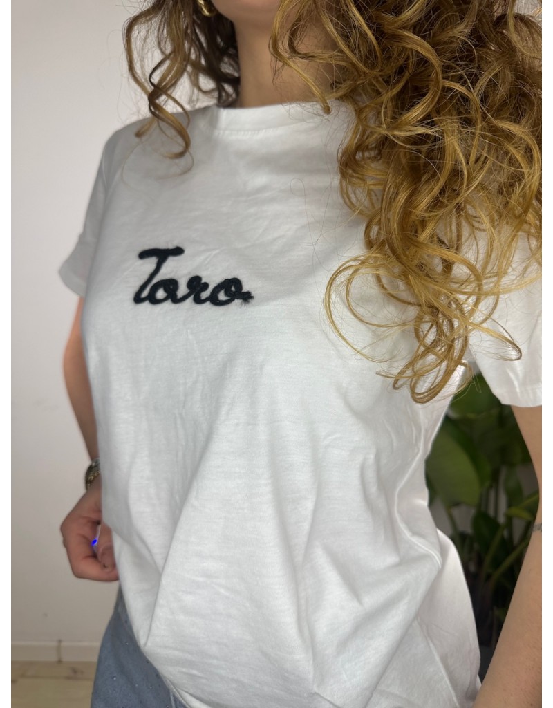 T-Shirt semplice con scritta ricamata.
