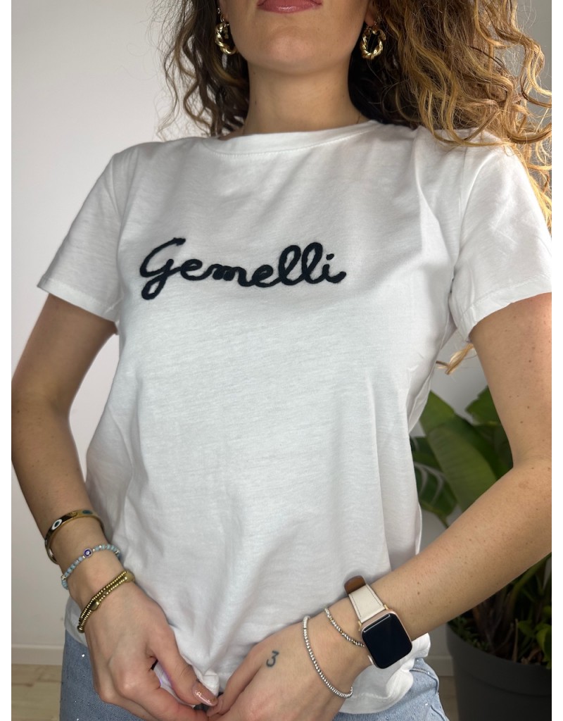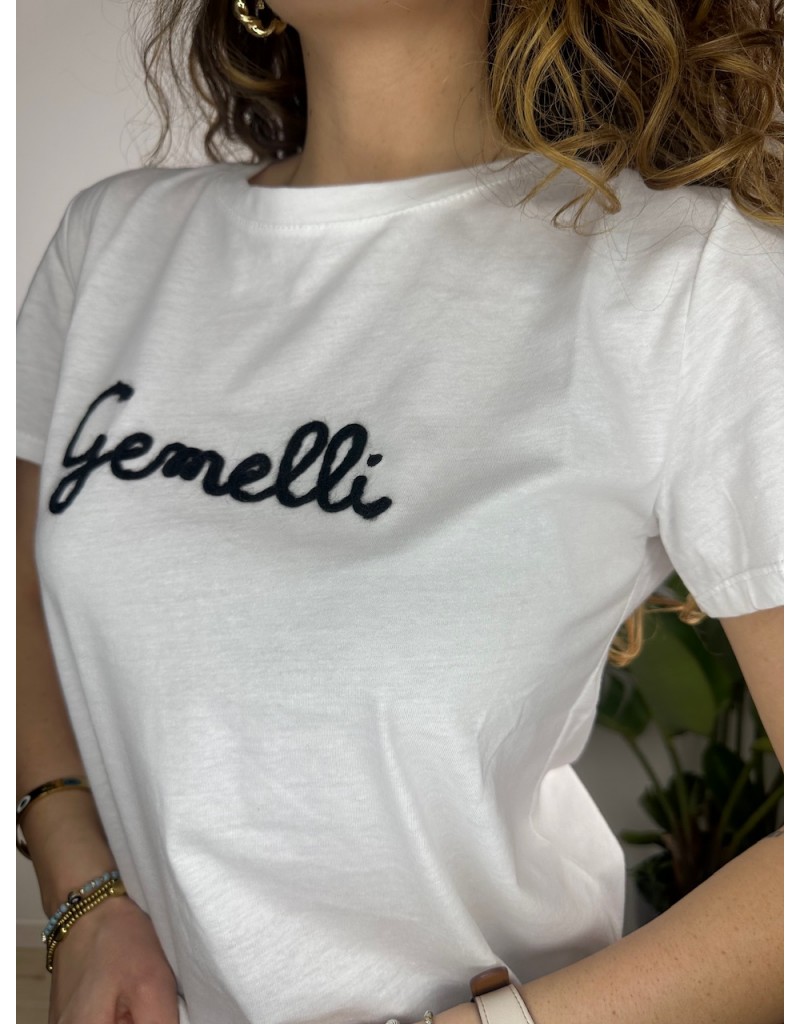 T-Shirt semplice con scritta ricamata.