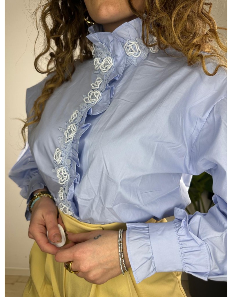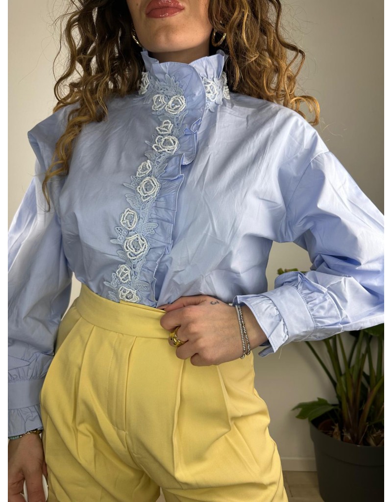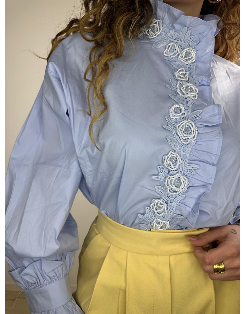 Camicia con colletto alla coreana,con orlo in pizzo e perline.