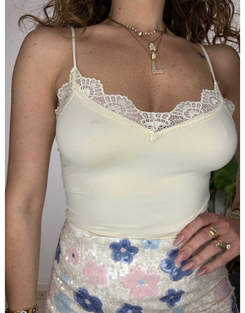 Body in licra con bordo in pizzo.