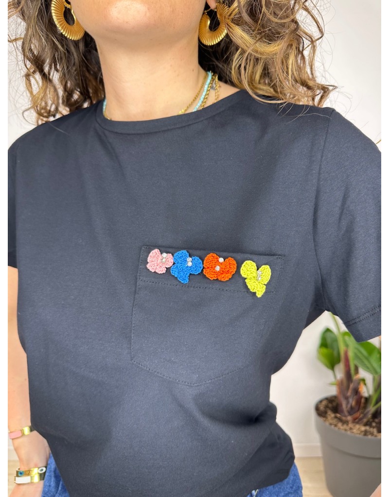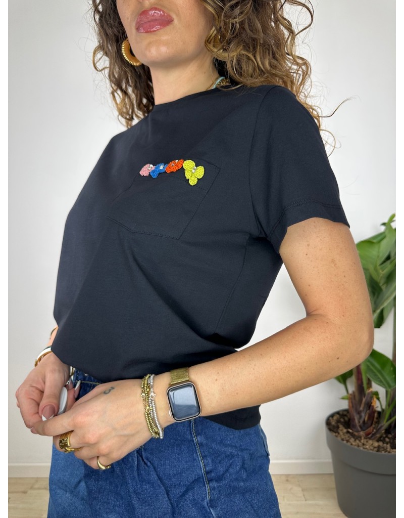 T-Shirt con fiorellini ricamati.