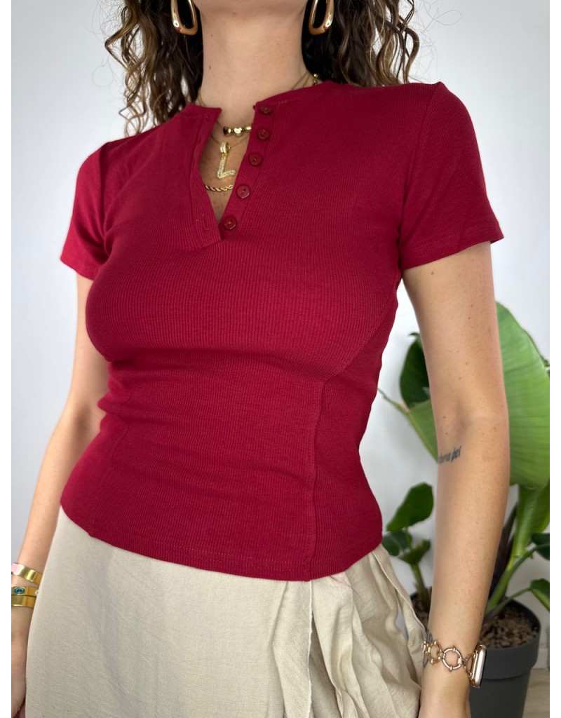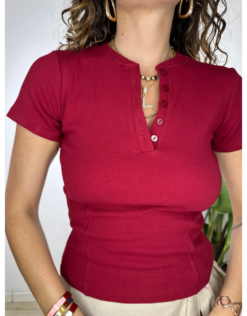 T-Shirt modello Crop a costine con chiusura a giappette.