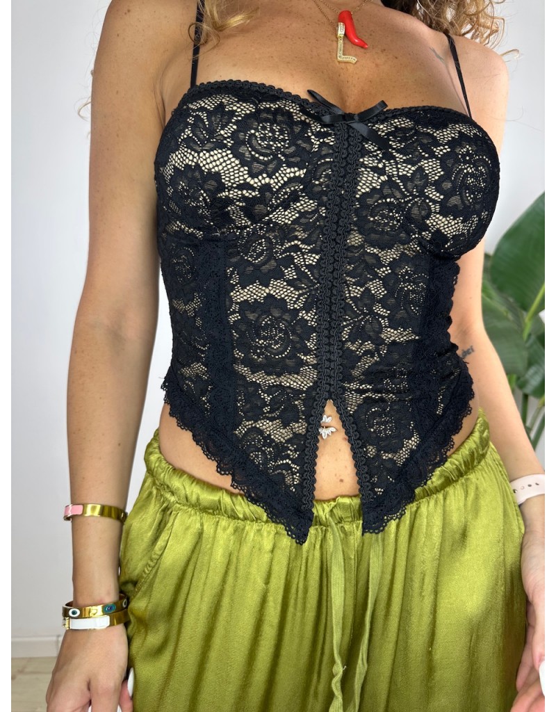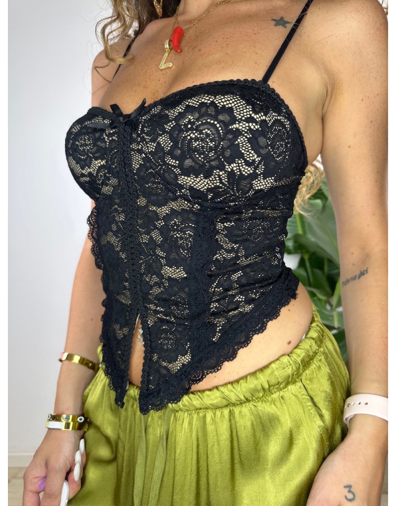Bustier in total pizzo con molla posteriore.