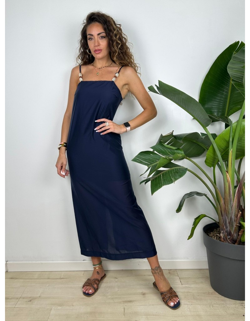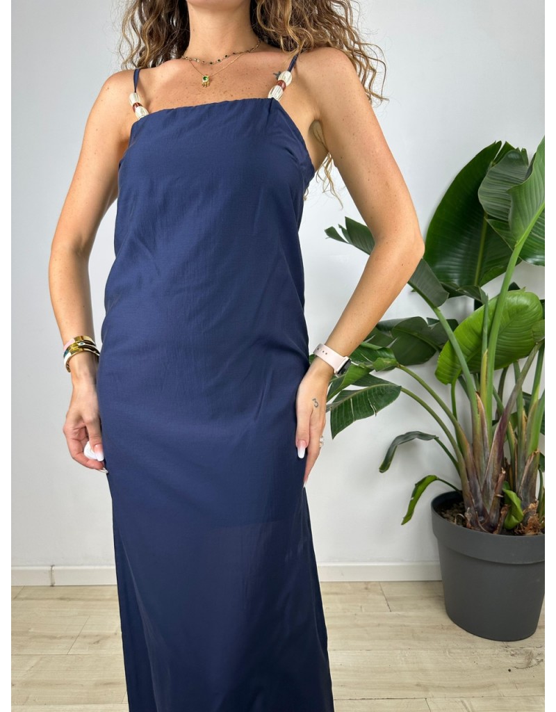 Vestito lungo con bretelline in tessuto cotone.
