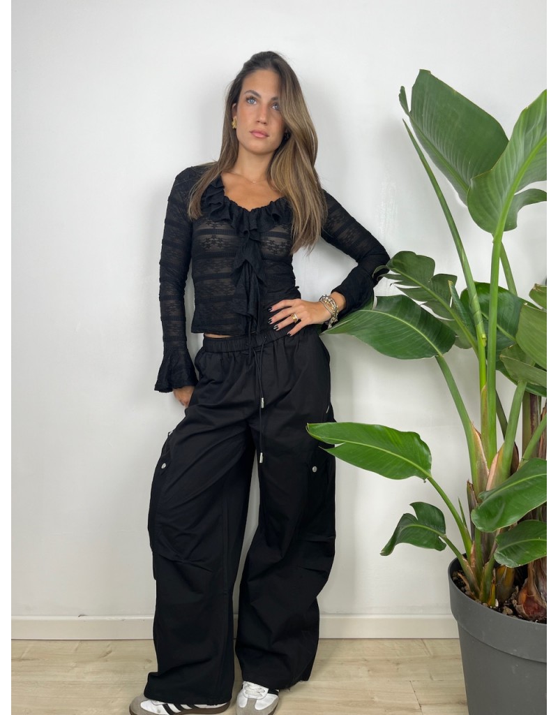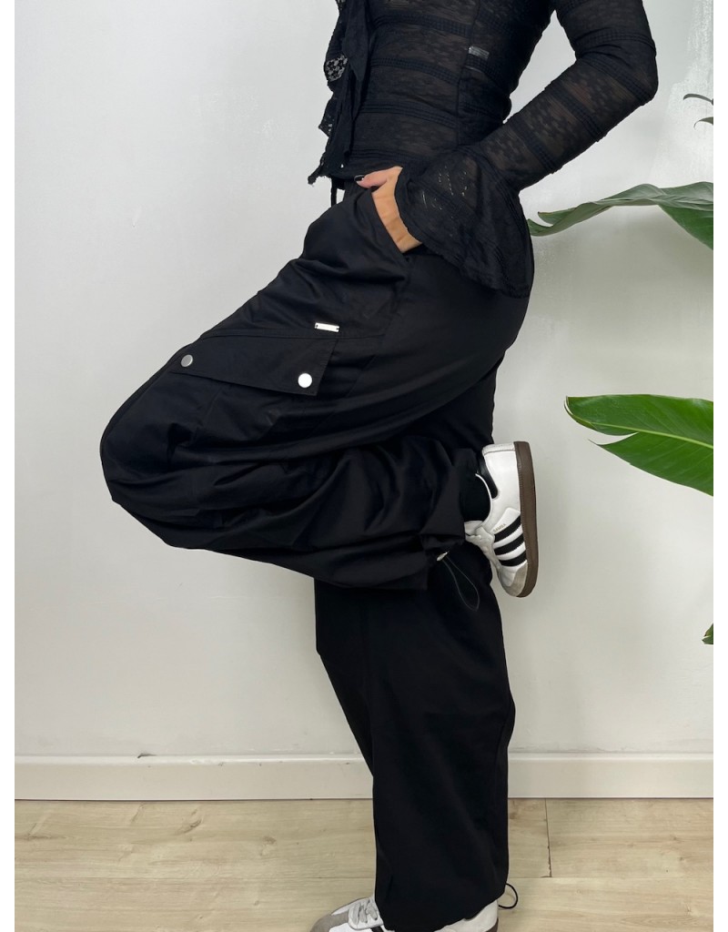 Pantaloni modello cargo con coulisse in vita.