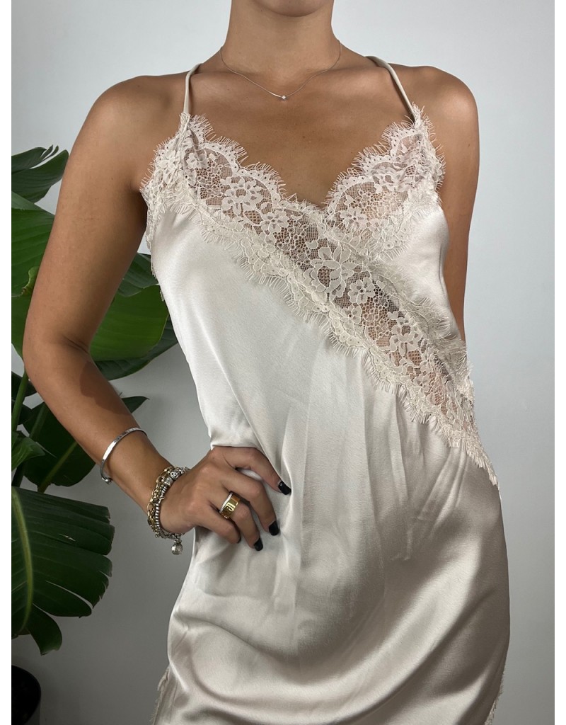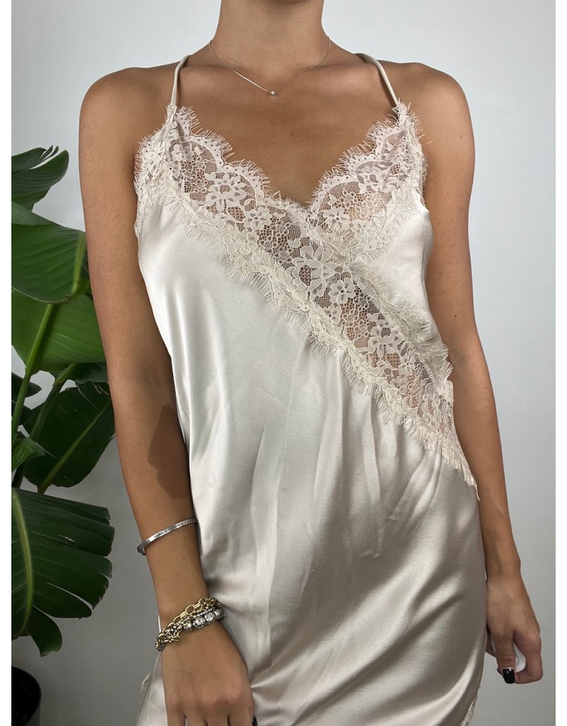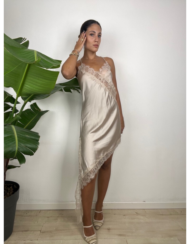 Vestito satin con bordo in pizzo. Lunghezza media-corto.