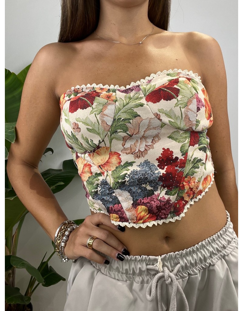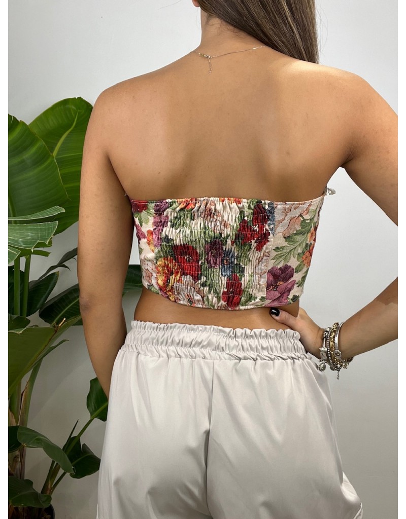 Bustier a fantasia con fantasia floreale. Ha una molla posteriore.
