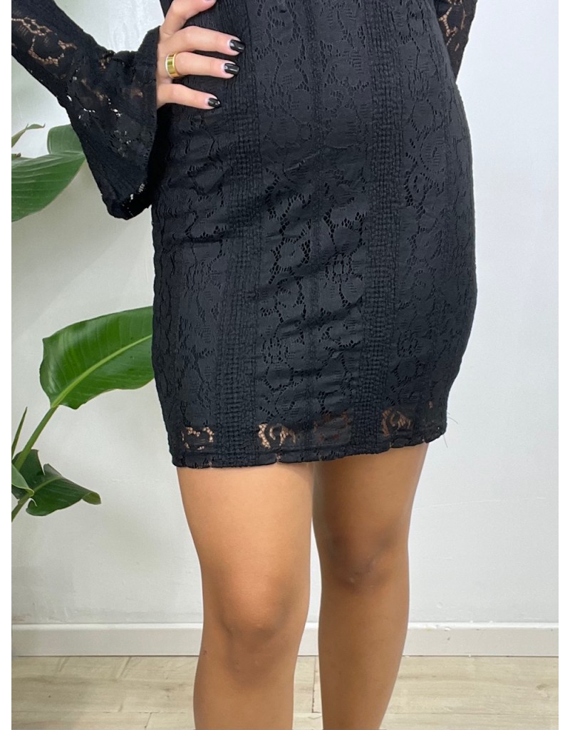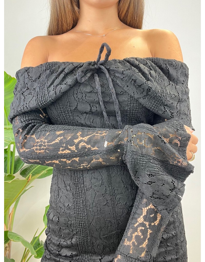 Vestito in totalpizzo con scollo a barca.