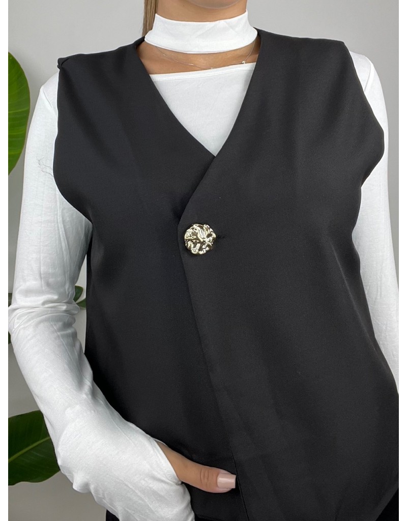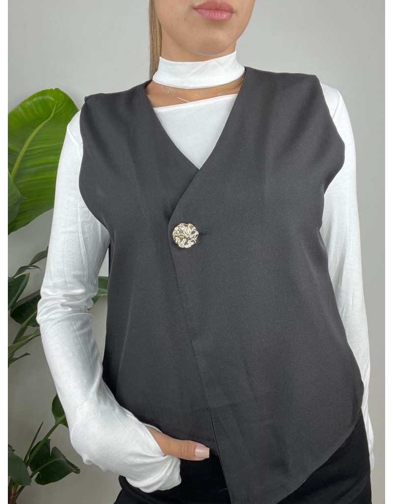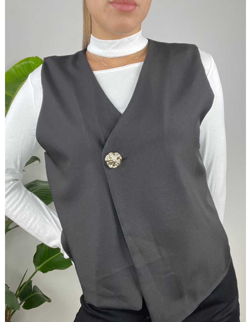 Gilet asimmetrico con bottone oro.