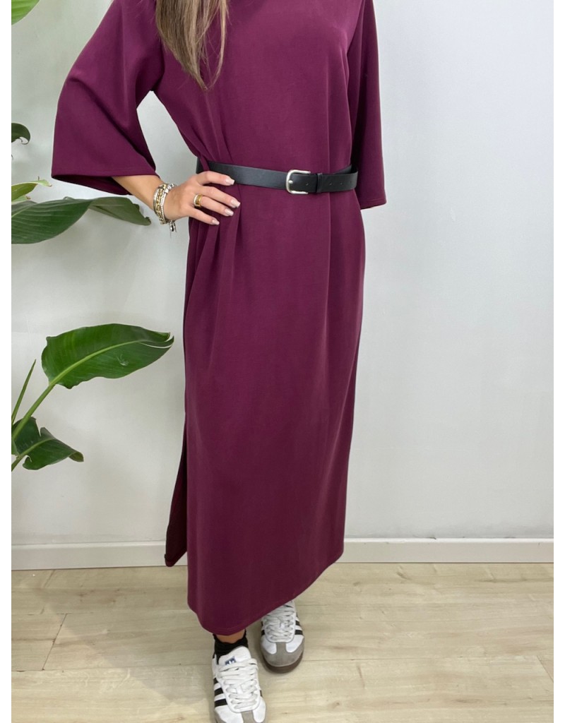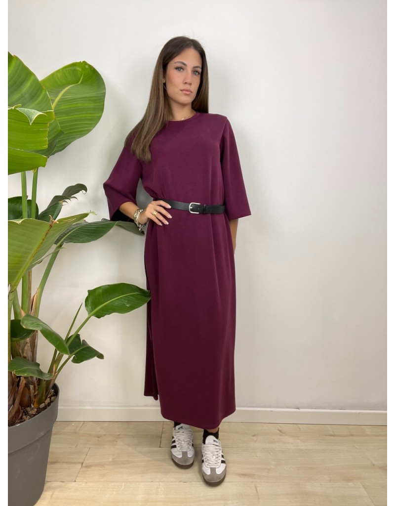 Vestito tinta unita con cinturino e manica 3/4.