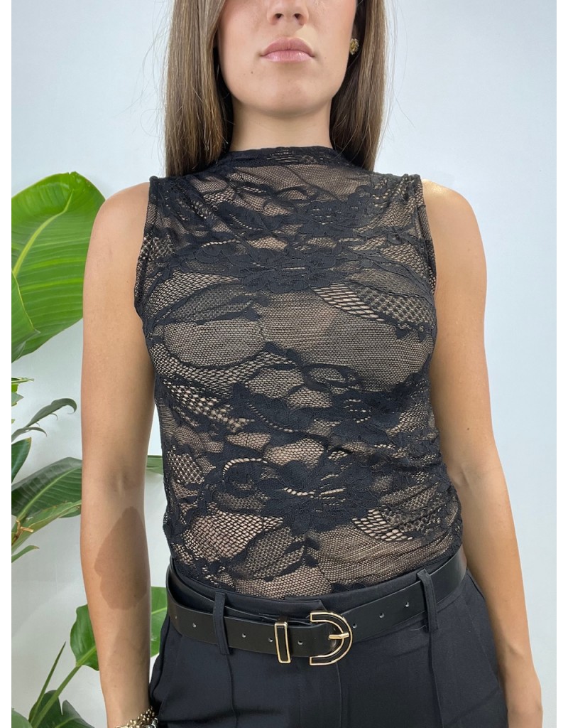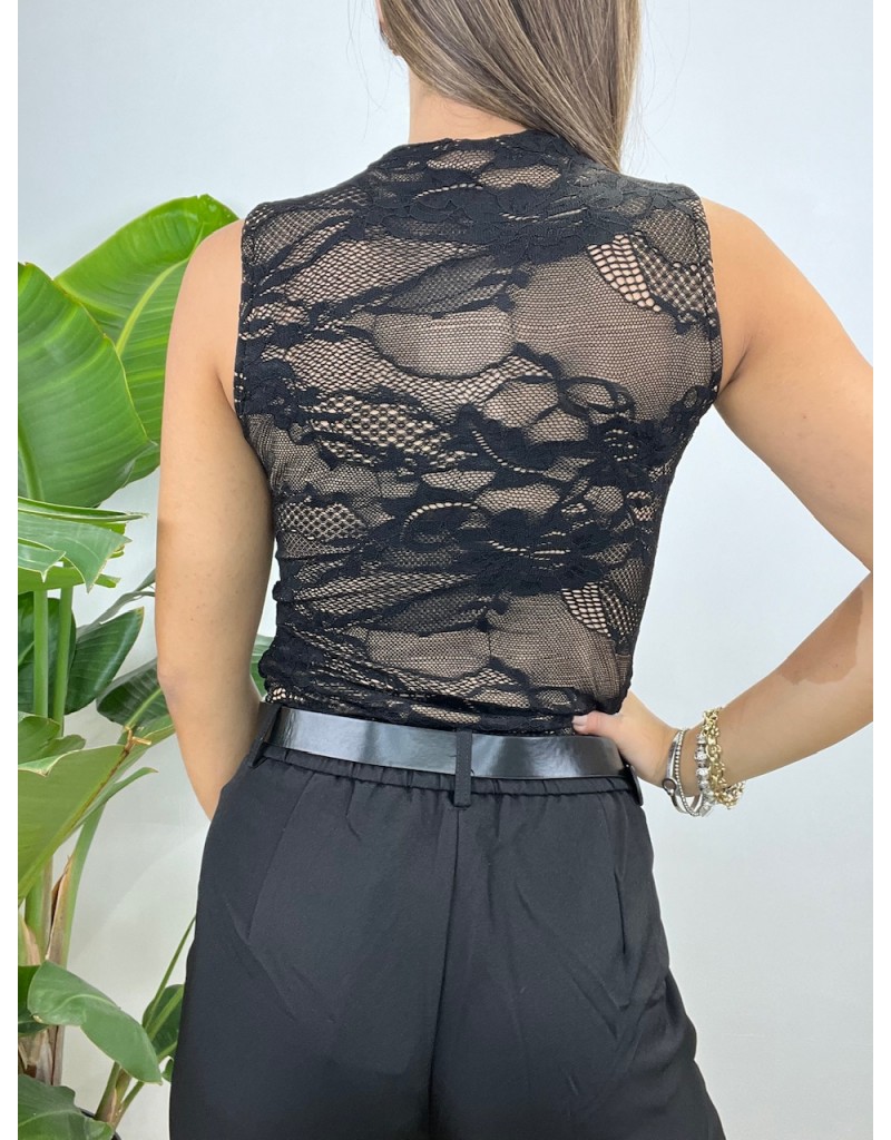 Body a giro manica in pizzo.